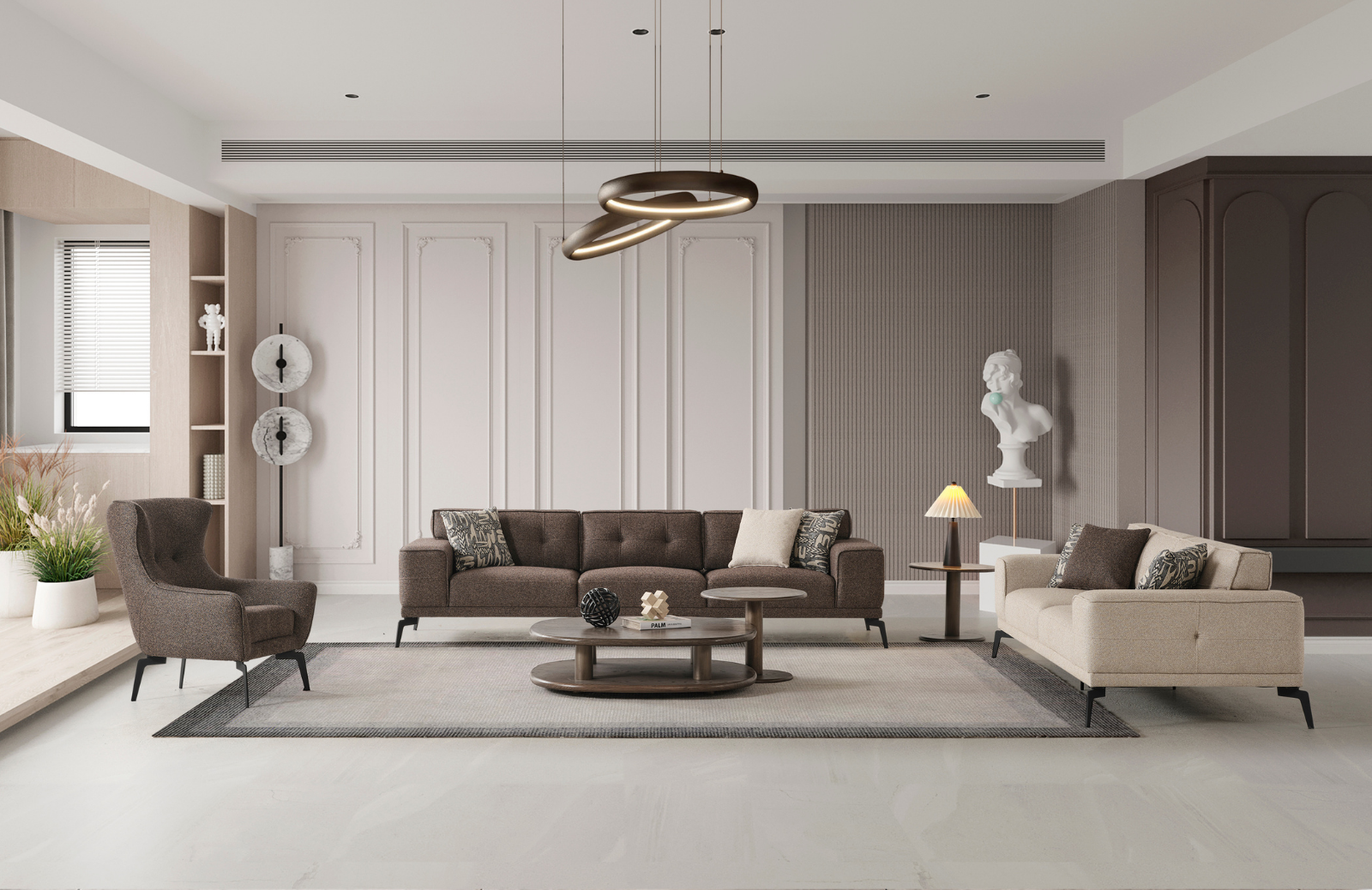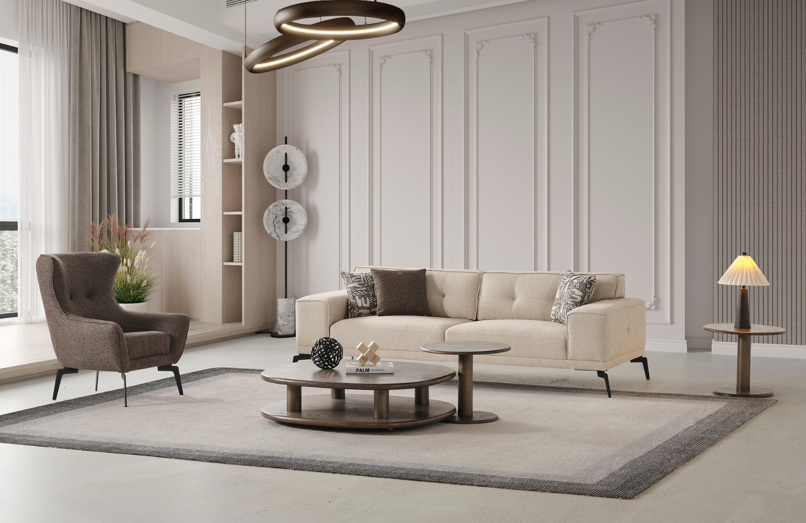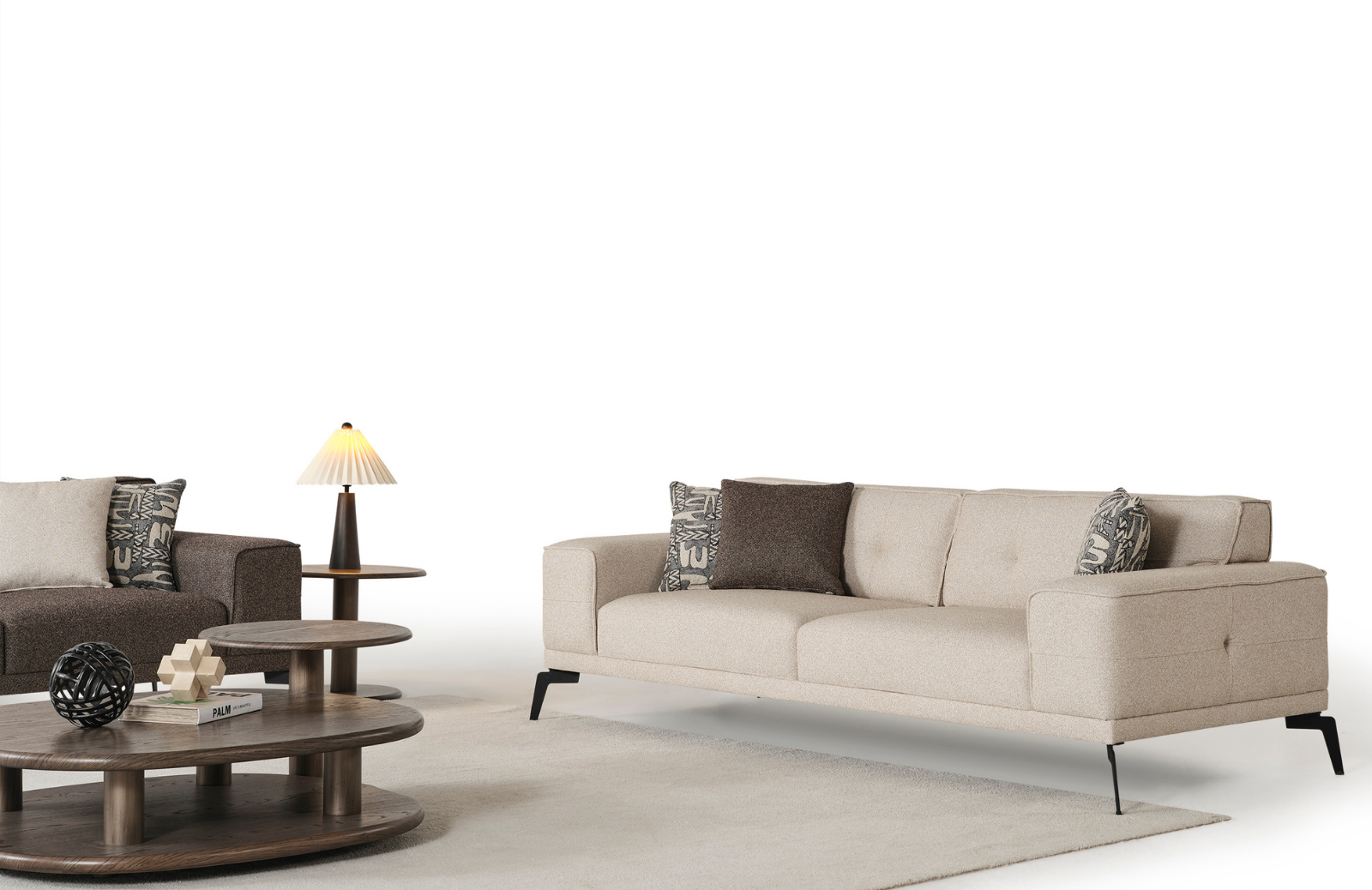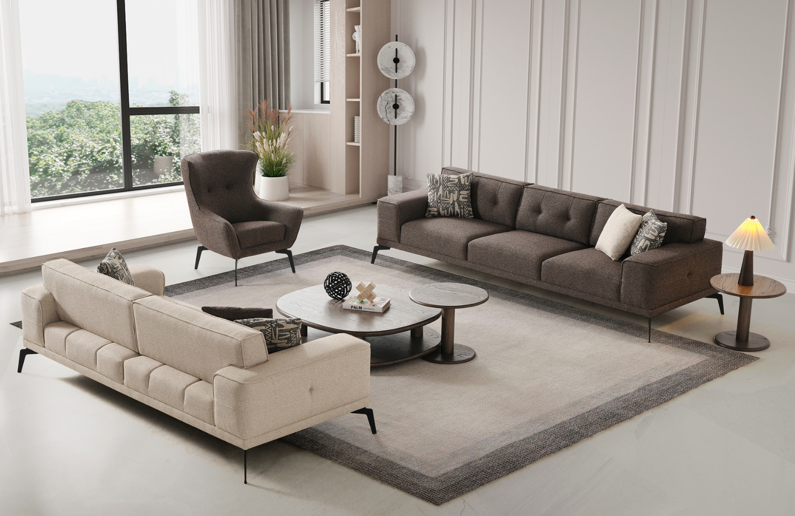 Sıcak tonların modern bir tasarım ile buluştuğu Voight koltuk takımı, yüksek kalite standartlarında üretilen özel bir mobilyadır. Çelik gövde üzerine kayın ağacından üretilen Voight koltuk takımı, sağlamlığı ile uzun soluklu bir kullanım sunar. Modern tasarımına eşlik eden birinci sınıf nubuk kumaşı, hızlı yıpranmalara karşı dayanıklıdır. 32 dns hr süngere sahip oturum minderleri ise aradığınız konforu sizlerle buluşturur. Takım; 1 adet dörtlü koltuk, 1 adet üçlü koltuk ve 1 adet berjerden oluşmaktadır. Geniş bir oturum alanına sahiptir ve kalabalık misafirlerinizi gönül rahatlığı ile ağırlamanıza olanak sağlar. Koltuk takımı, kuru temizleme için uygun değildir fakat su ve beyaz sabun ile silinebilmektedir. Voight koltuk takımının ayak renginde değişiklik yapılması mümkündür. Siparişiniz sırasında kumaş ve renk seçeneklerinden yararlanabilirsiniz.