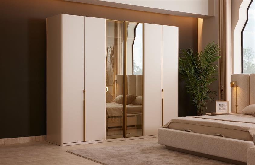 Dolap kapakları gümüş reflekte camlı alüminyum çerçeve.