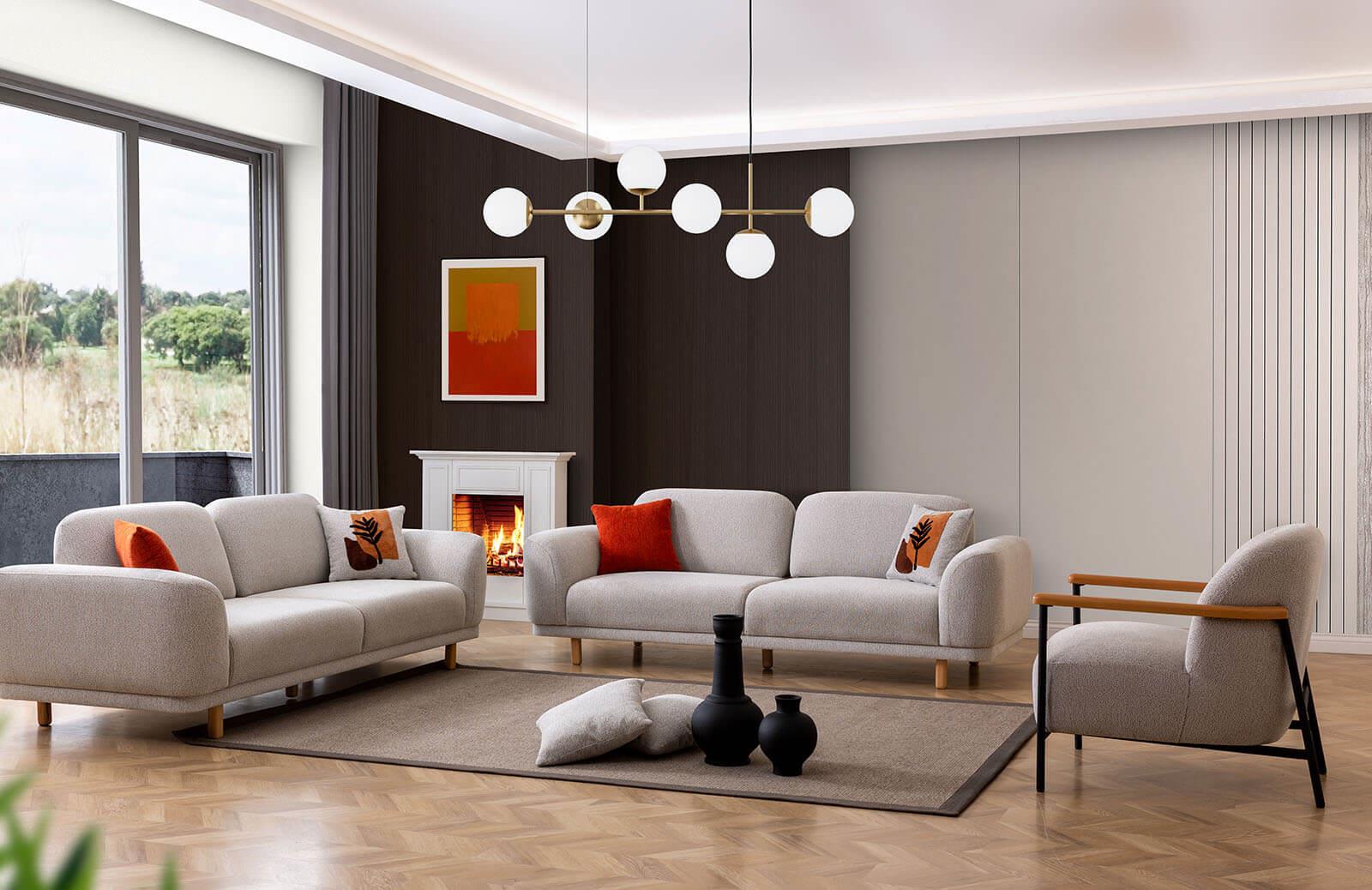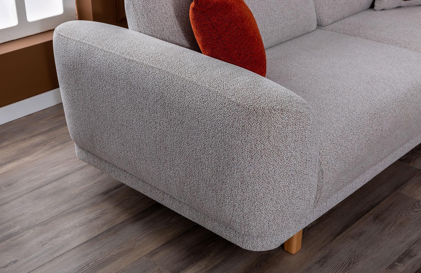 Ahşap ayak malzemesi ve yerden yüksek ayak tipi ile tasarımınızı tamamlayabilir, istediğiniz ayak rengi seçeneği ile son dokunuşları yapabilirsiniz. Misafir odası takımı olarak da tercih edebileceğiniz bu şık ve konforlu takım, evinizin gözdesi olmaya aday.