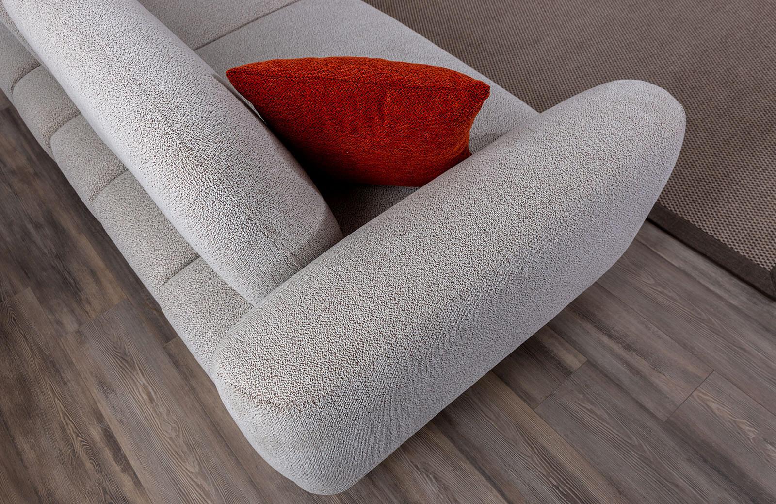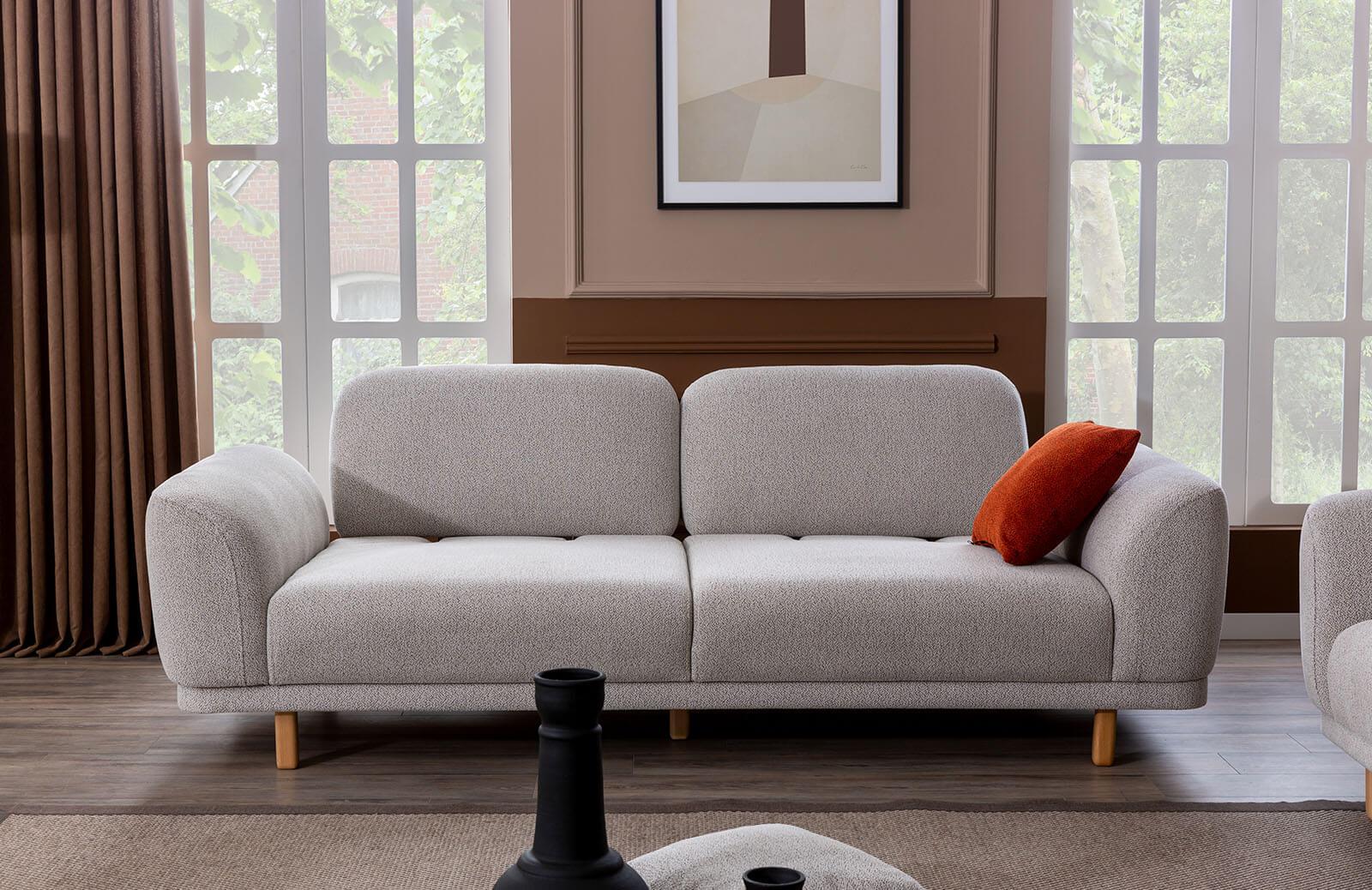 Oturum minderinin sabit olması, konforlu bir deneyim sunarken, mindersiz sırt kısmı ile estetik bir görünüm kazanıyor. Kırlentlerin dahil olduğu tasarım, hem şıklığı hem de rahatlığı bir arada sunuyor.