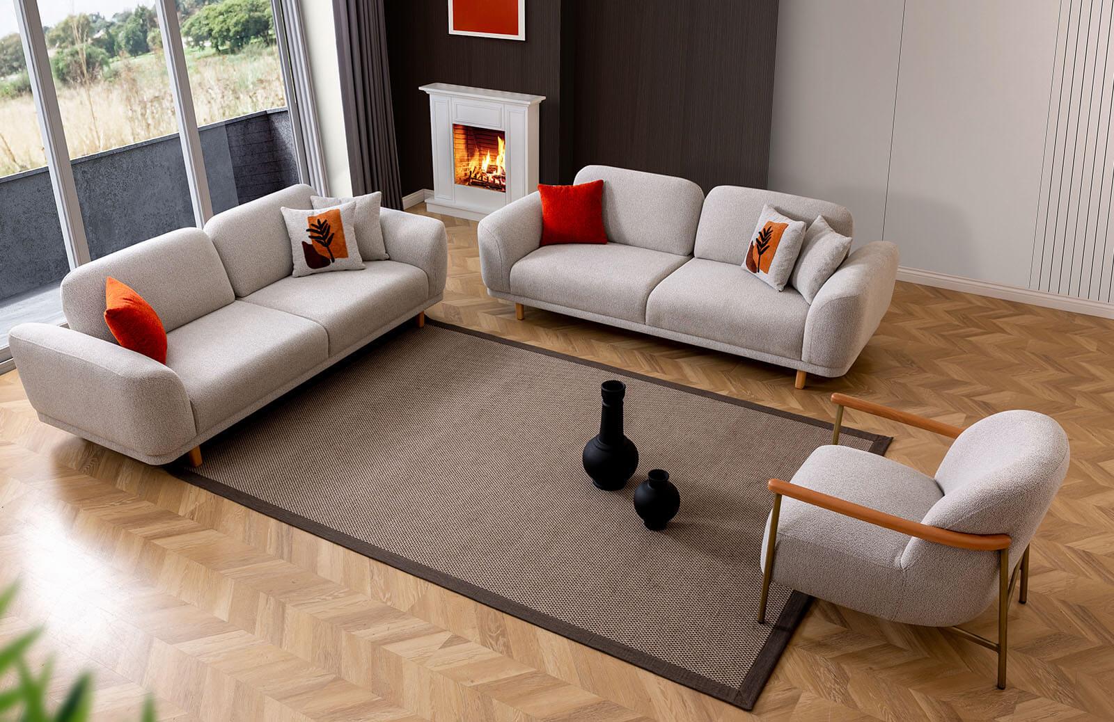 Kumaş cinsi şönil olan bu oturma odası takımı, dilediğiniz renk ve kumaş seçimini yapmanıza imkan tanıyor. Ayrıca, özel ölçü taleplerinize de cevap verebiliyor. Üretim esnasında kullanılan gürgen ağacı, uzun ömürlü bir kullanım sunuyor.
