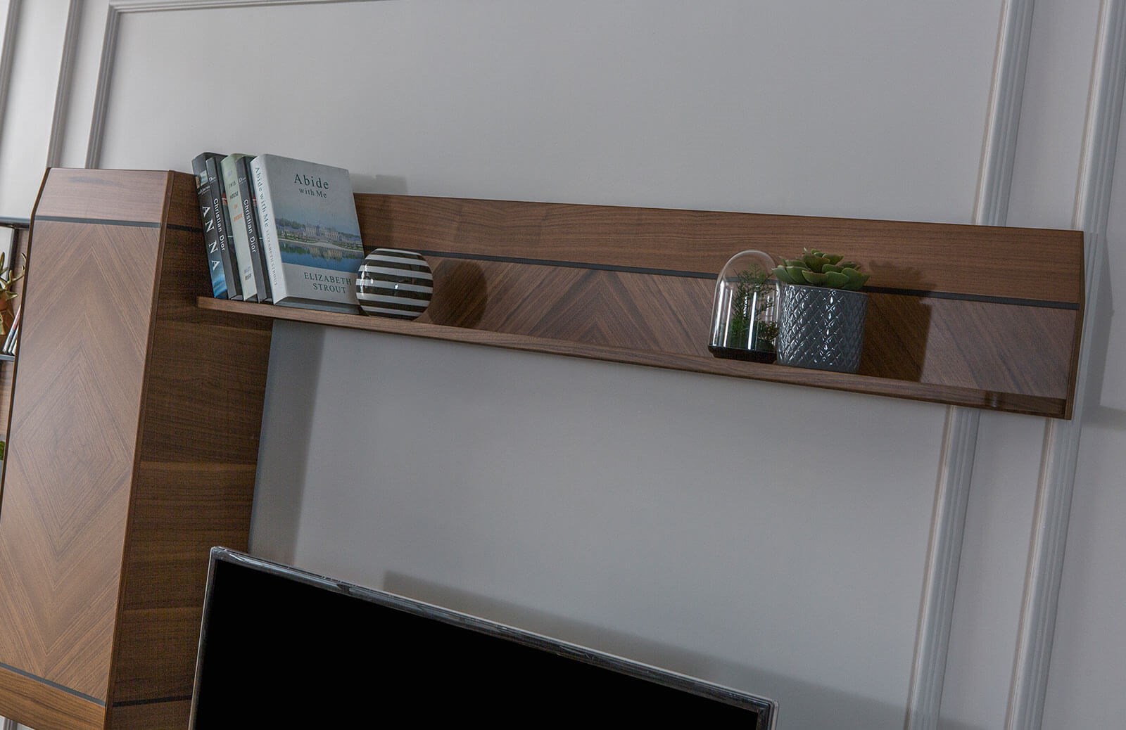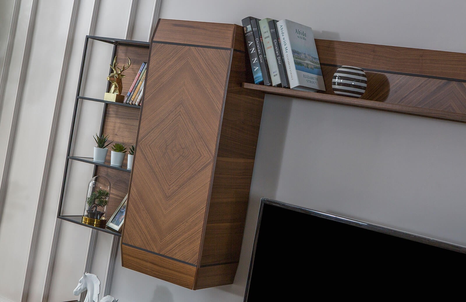 Ahşabın doğallığını evinize taşımak, sıcak ve samimi bir televizyon köşesi dekore etmek istiyorsanız Zoya tv ünitesini tercih edebilirsiniz. Zamanı hiç geçmeyen ceviz rengi ile tasarlanan Zoya tv ünitesi; tv sehpası, üst blok, raf ve raf kafesten oluşan bir takım ile sizlere sunulur. Mevcut kombinasyonda değişiklik yaparak, farklı bir kombinasyon tercihinde bulunabilirsiniz. Ünitenin kapaklı bölmeleri ve rafları, aradığınız ihtiyaçlara cevap verecek niteliktedir. Kalite standartlarına uygun şekilde üretilen tasarımın genel malzemesi, Amerikan ceviz kaplamadır. Kullanım kolaylığı açısından tüm kapaklarda yavaşlatıcı mekanizma kullanılır. İmalatı sırasında sağlığa zararlı hiçbir maddenin kullanılmadığı Zoya tv ünitesi, uzun yıllar evinizin yıldızı olmaya hazır.